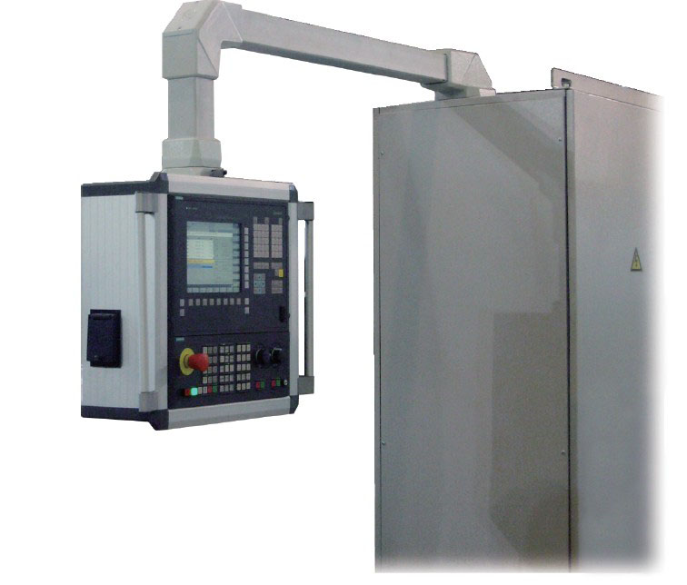 人機(jī)界面操作箱安裝的結(jié)構(gòu)通常對(duì)于那些需要操作人員與機(jī)器保持一定距離,一方面是保持安全,另一方面,考慮到觀察機(jī)器與生產(chǎn)系統(tǒng)的運(yùn)行及時(shí)進(jìn)行參數(shù)調(diào)整而設(shè)計(jì)的,它無需安裝在電柜上,而是通過機(jī)械的懸臂系統(tǒng)安裝在機(jī)器上,并且可以旋轉(zhuǎn)方便操作人員在各個(gè)角度操作。