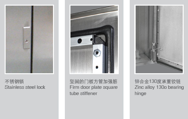 ● 加寬的箱體邊框、承重鉸鏈、門板方管加強筋確保箱體系統(tǒng)的高強度