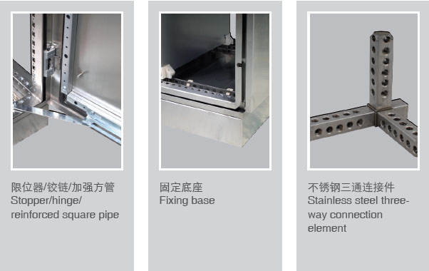 ● 獨(dú)特的九折型材配合高強(qiáng)度的不銹鋼三通連接件焊接